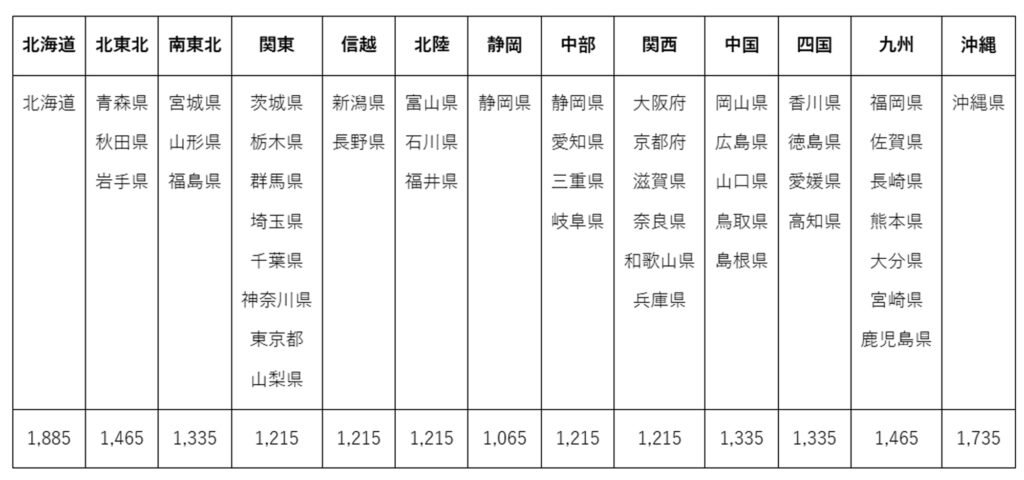 配送料一覧
